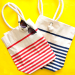 Eine schöne Strandtasche mit Streifenmuster. Die Kordel-Träger errinern ans Meer, Schiff und an den Urlaub. Die tasche ist mit Name oder Text personalisierbar.