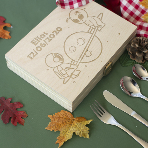 - 1 Kosmonaut-Motiv auf jedem Besteck, mit Lasergravur graviert