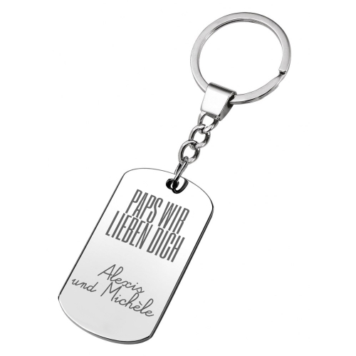 Dieser personalisierte Schlüsselanhänger ist ein ideales Geschenk für Ihren Vater. Wählen Sie einfach eines der vorgegebenen Modelle und personalisieren Sie den Schlüsselanhänger mit Namen der Kinder, der Vaters oder mit einem kurzen Text.