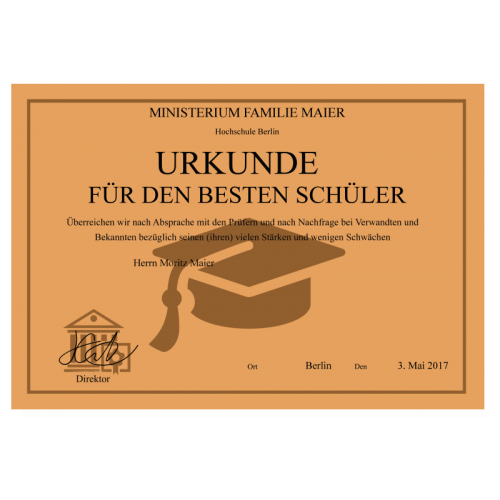 Wählen Sie Motiv und Farbe der Urkunde und gestalten Sie sie mit ganz persönlichem Text.